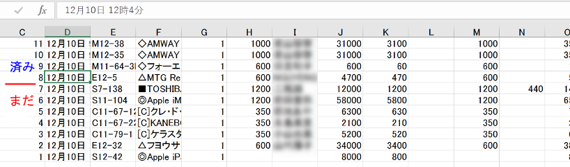 3、販売データの下部に前回取り込みメモ(日付と商品タイトル)があるので、日付をコピーします。