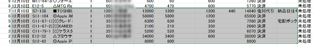 複数点落札している人がいたら、販売データ上で名前と枠をまとめます。