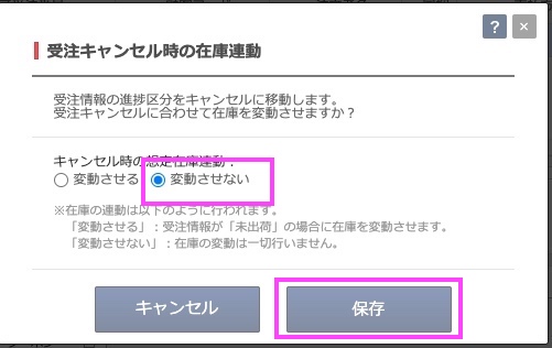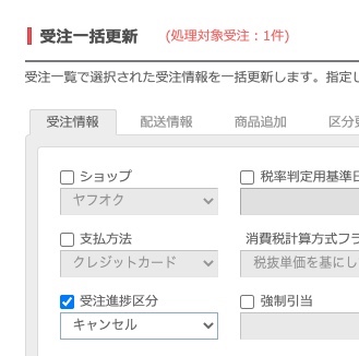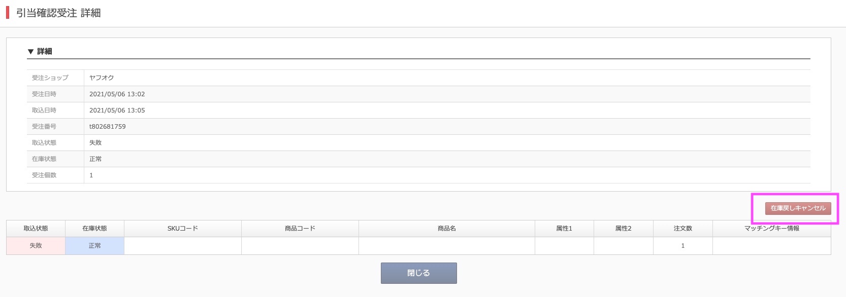 受注が入った時点で在庫が減らされているので、在庫数を元に戻します。 ※TEMPOSTARから出品していない商品については、そもそも在庫連動していないので、この操作は不要です。 |