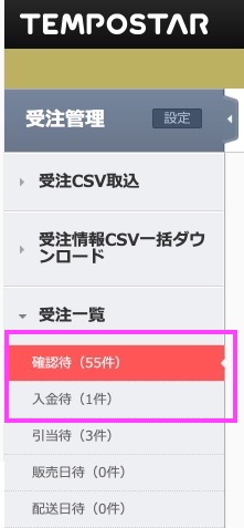 TEMPOSTAR > 「受注管理」 > 「受注CSV取込」に進む。