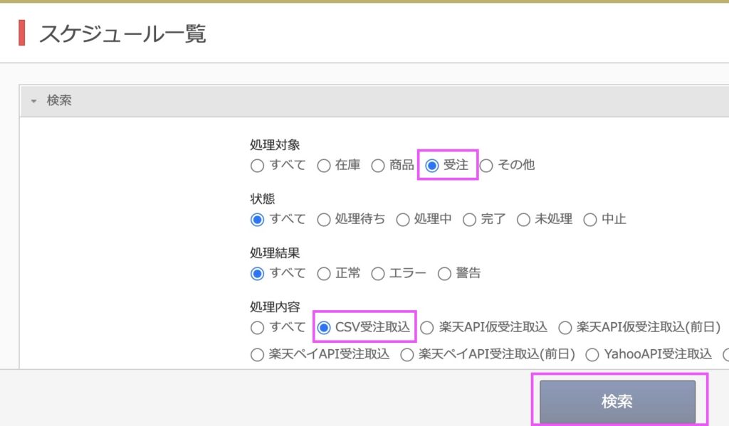 「取込の確認はスケジュール一覧をご参照ください。」のリンクより、取込情報を確認する。