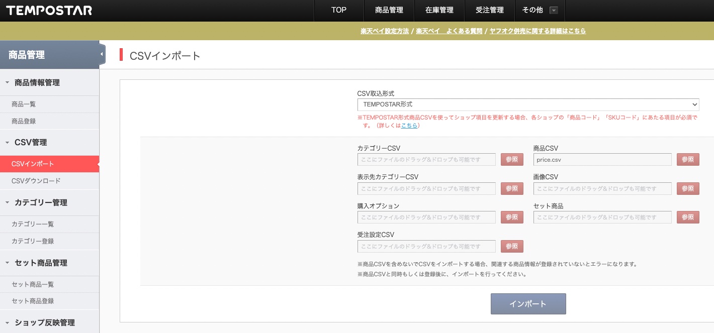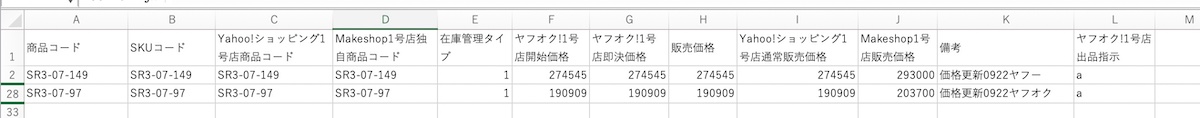 | メモ ・備考のテキストの冒頭は「価格更新0922」のようにヤフーとヤフオク同一の文言を付与しておくと便利です。(TSで一括確認できるため) ・ファイル名は自由ですが、UTF-8で保存するとインポート時エラーが出るのでご注意ください。 |