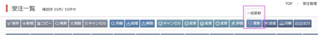 該当の受注にチェックを入れ、「更新」をクリックする。