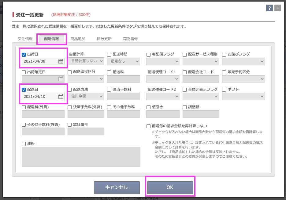 配送日・出荷日を一括登録する