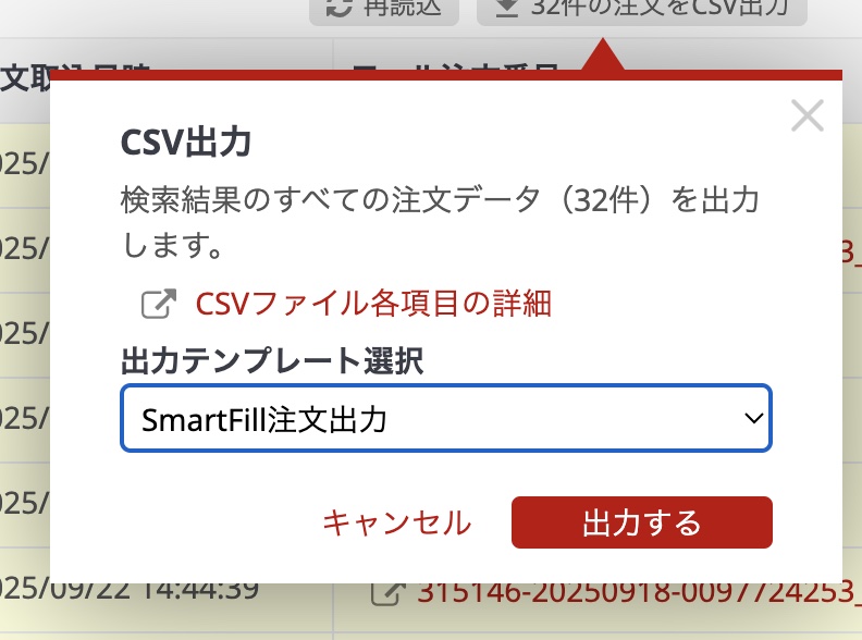- 該当注文をCSVを出力する。