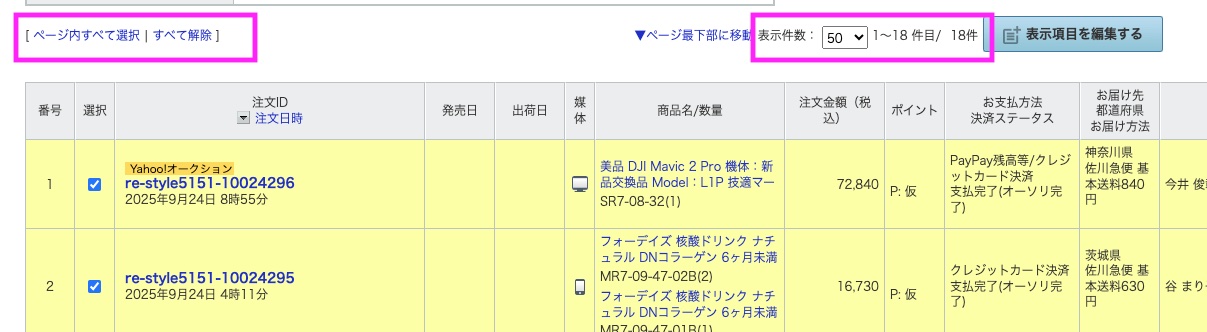 ヤフーショッピングとヤフオクの受注は全て取り込みされます。